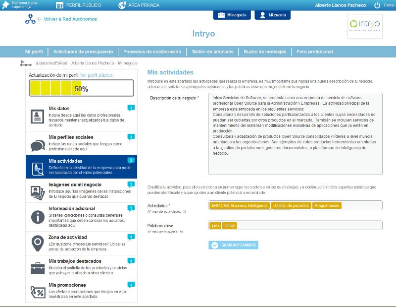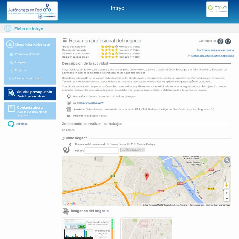 Autónom@s en Red permitirá a cada empresa contar con su propio espacio online en el que mostrar información específica sobre la empresa, productos y servicios, conexión con las redes sociales, imágenes de su experiencia en trabajos anteriores, e incluso, publicar ofertas y promociones. En definitiva, un espacio propio de la empresa, en el que ofrecer sus servicios y gestionar la solicitud de presupuestos de potenciales clientes.