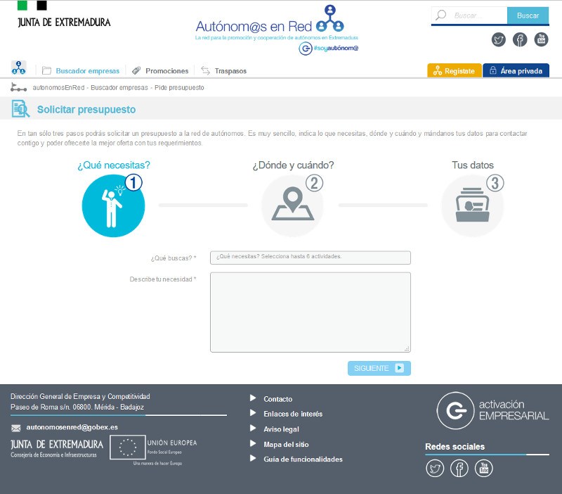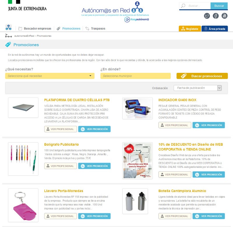 Autónom@s en Red es un espacio online de referencia para autónom@s en Extremadura donde generar relaciones con otras empresas, buscar proveedores y clientes, así como hacer networking e iniciar proyectos de colaboración. La plataforma cuenta con un potente buscador, además de un espacio privado para el contacto y el desarrollo de proyectos de colaboración entre los miembros de la Red.