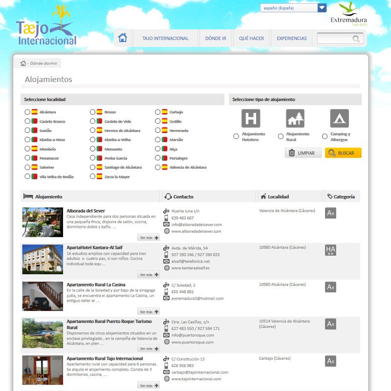 En el portal turístico del Tajo Internacional puede encontrar información de calidad referente a recursos culturales, naturales, gastronómicos y orientados al turismo familiar, propuestas y productos turísticos, y un sin fin de información útil del territorio. También cuenta con un directorio de empresas y con una agenda actualizada de los eventos más importantes.