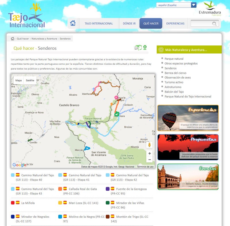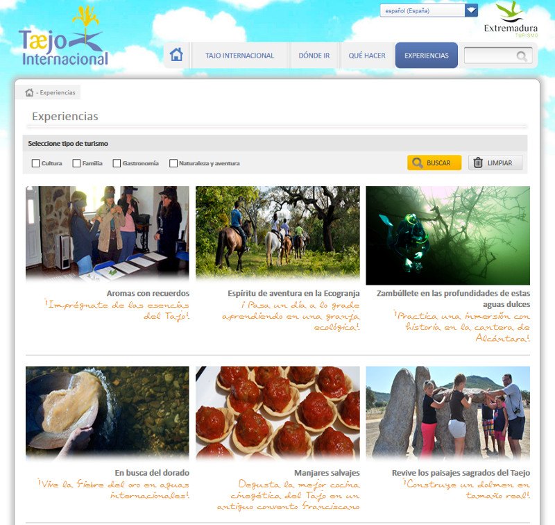 Para el desarrollo de este portal turístico, se ha diseñado una imagen y un estilo personalizado adecuado a la marca 'Tajo Internacional'. Todos los contenidos que aparecen en el portal han sido desarrollados bajo el ámbito de este proyecto y se encuentran disponibles en cinco idiomas (Español, Portugués, Inglés, Francés, Italiano y Alemán). Además, el portal cuenta con textos reescritos para Lectura Fácil lo que facilita la lectura a personas con alguna discapacidad.