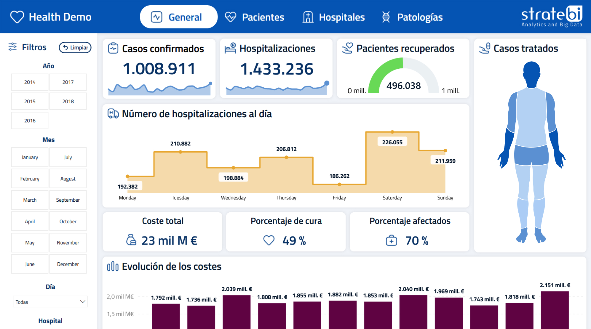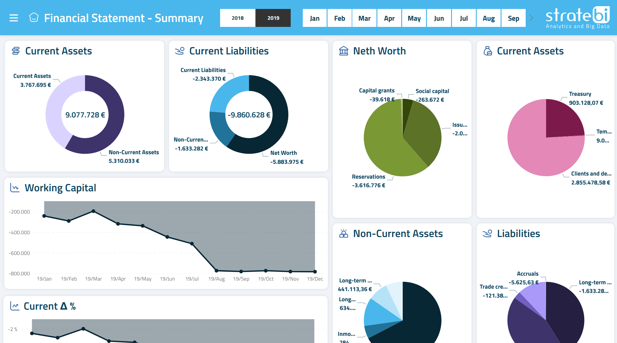 Power BI is a set of analytics applications that allows you to analyze data and share information. Power BI, (which Stratebi is an official partner) is the perfect solution for business intelligence, allowing you to view different data sources in a single report for the most critical KPIs for your business. Use it anytime and wherever you are! take a look at our courses or request them 'in company.